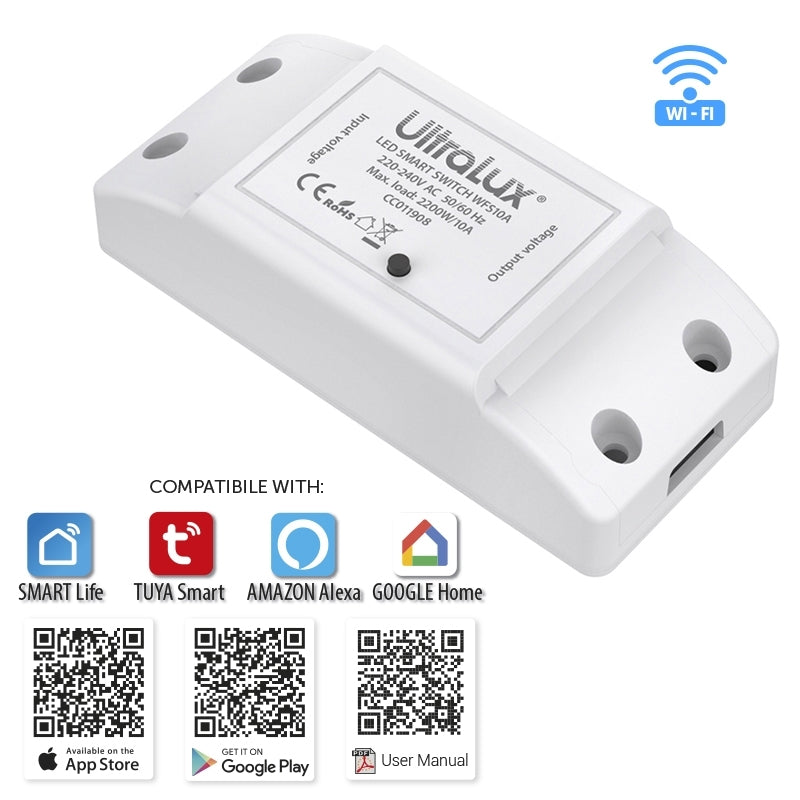 Intrerupatorul inteligent este destinat controlului de la distanÈÄ al aparatelor electrice prin intermediul unui telefon inteligent / tabletÄ Èi / sau asistent vocal. Poate fi controlat de oriunde din lume unde unitatea de control este conectatÄ la Internet. Wi-Fi este necesar acolo unde se aflÄ comutatorul inteligent.